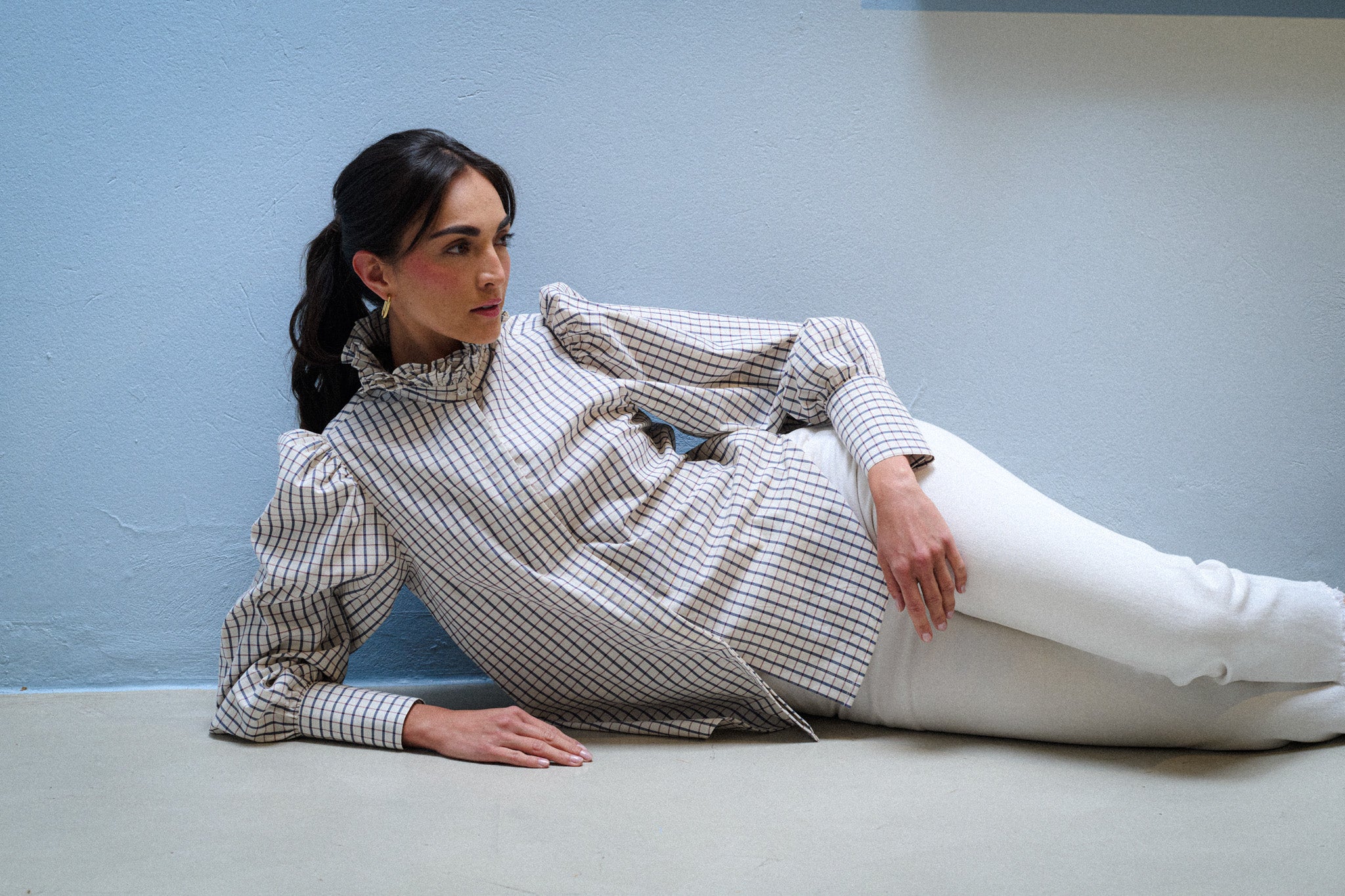 Inspirada en la elegancia clásica y el arte de la confección, cada prenda es creada con amor por manos de talentosas mujeres colombianas, destacando la calidad excepcional y el cuidado en cada detalle.