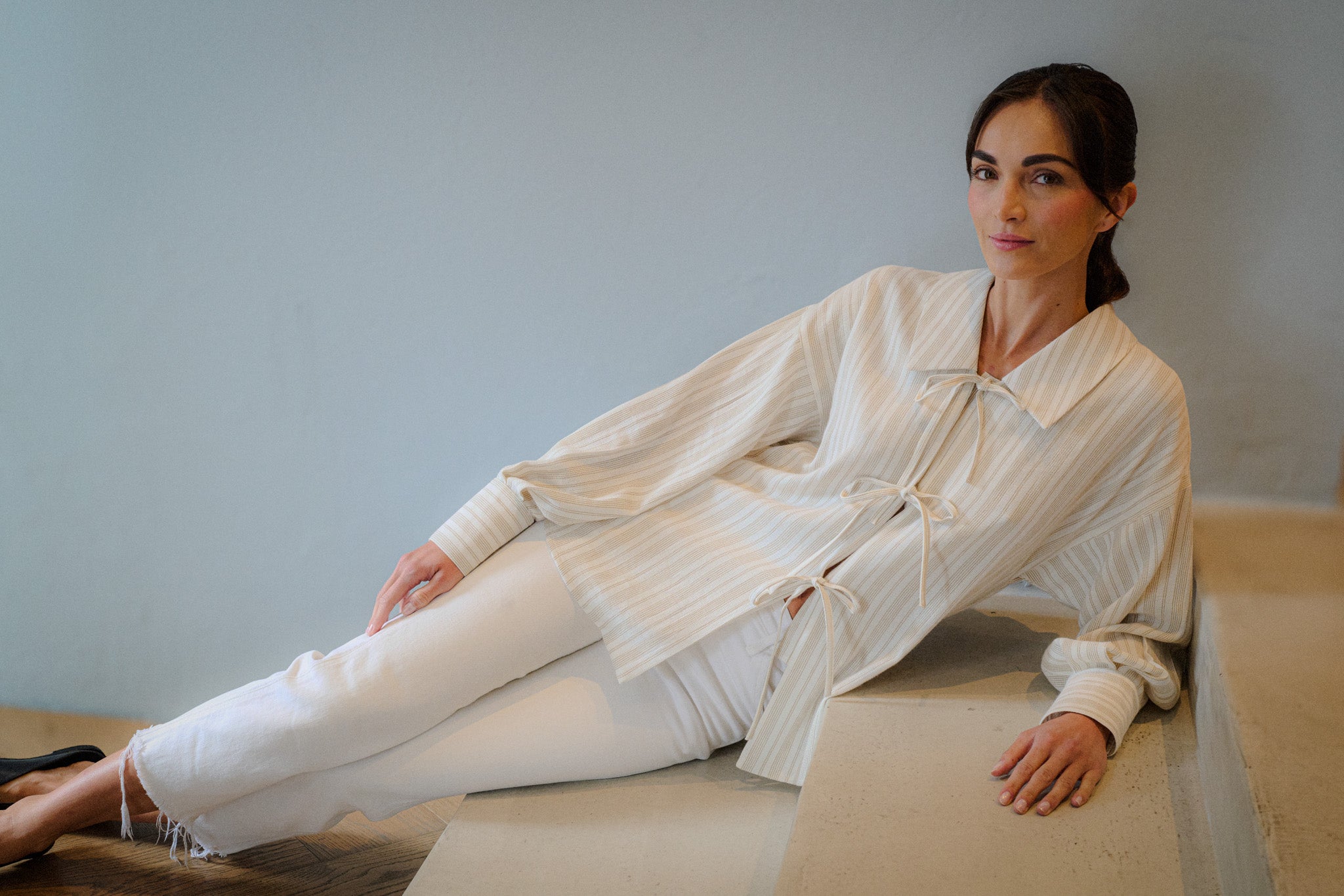 Inspirada en la elegancia clásica y el arte de la confección, cada prenda es creada con amor por manos de talentosas mujeres colombianas, destacando la calidad excepcional y el cuidado en cada detalle.