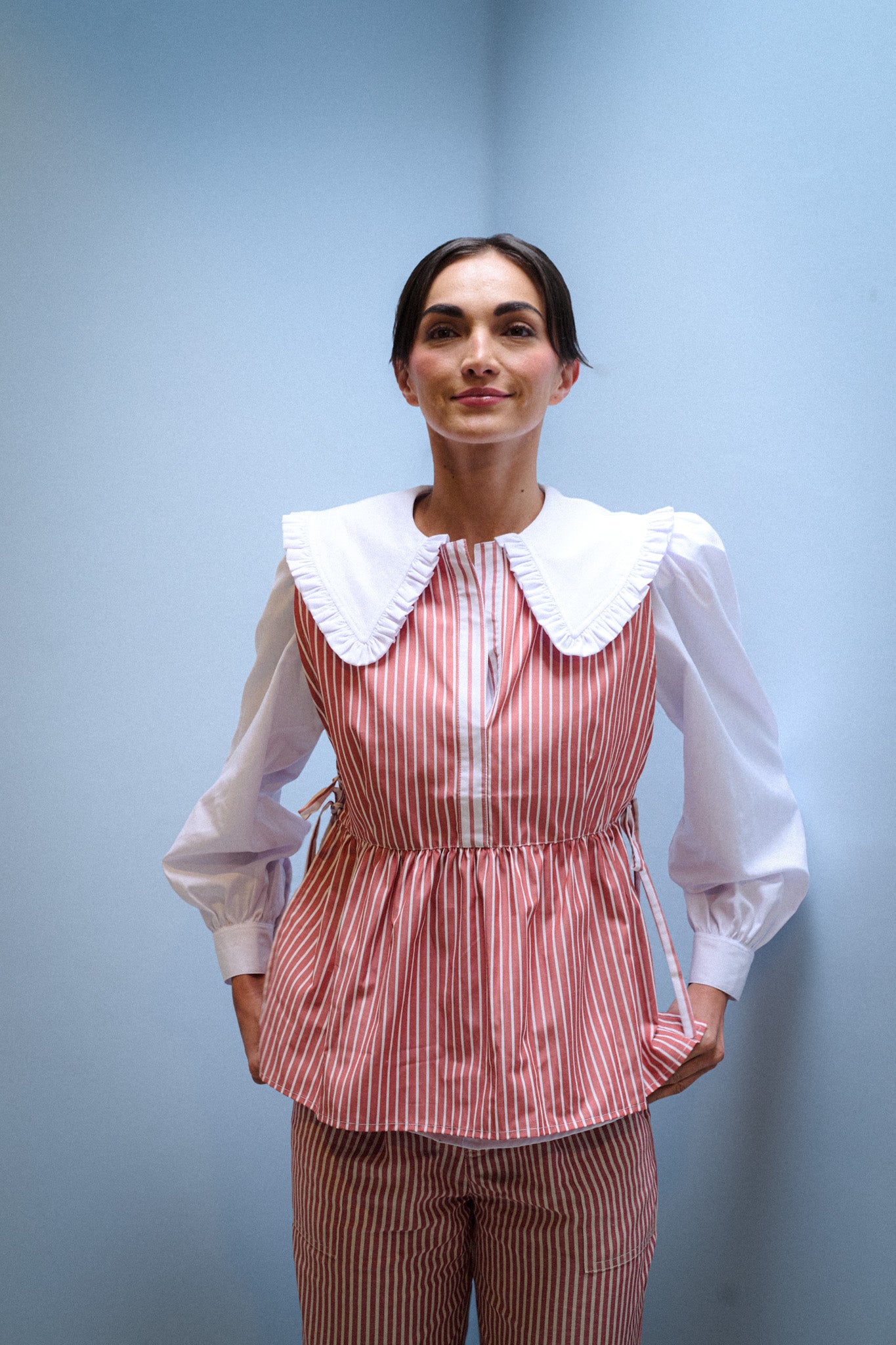 Inspirada en la elegancia clásica y el arte de la confección, cada prenda es creada con amor por manos de talentosas mujeres colombianas, destacando la calidad excepcional y el cuidado en cada detalle.