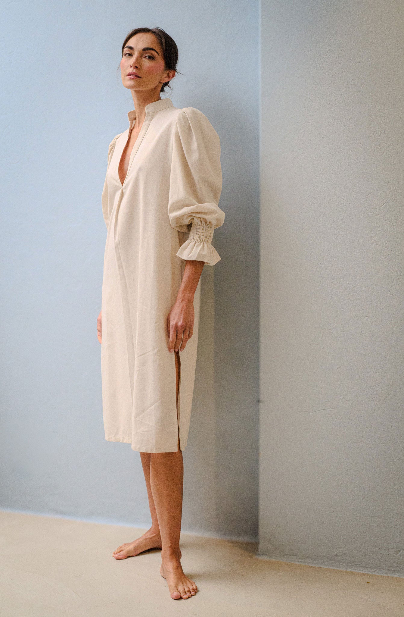 Inspirada en la elegancia clásica y el arte de la confección, cada prenda es creada con amor por manos de talentosas mujeres colombianas, destacando la calidad excepcional y el cuidado en cada detalle.
